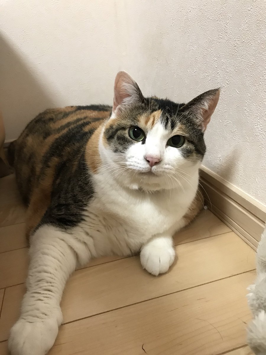 Hina 部屋片付けてると必ず近くにいるのですが ハミ出し具合がたまらないwww 三毛猫 猫画像 家猫 デブ猫 かわいい 家族 猫好きさんと繋がりたい